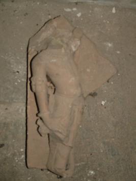 | Description / विवरण | Torso part of a figure , is in tribhanga posture carved with high relief and richly ornamented. Left hand is placed on his thigh. |