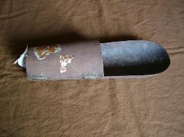 | Description / विवरण | It is an arm guard used to protect the elbow part. It is provided with clamps for fixation with the hand. Its one end is broader than the other end. Its body is without decoration. |