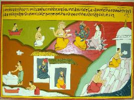 | Description / विवरण | Miniature painting based on Ekadashi Mahatmya depicting the importance of Ekadashi vrat of Migsar month depicting that it is easy to get boon and blessings of trinity but it is not easy to get the boon of Ekadashi, even for the gods. |