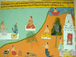 | Description / विवरण | Miniature painting based on Ekadashi Mahatmya depicting Ekadashi of Migsar month depicting Yudhisthir asking Krishna about the way of worship of Ekadashi vrat. |