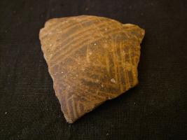 | Description / विवरण | It is medium fabric well fired potsherd. It is painted with black colour on red background. The painting patterns are geometrical and horizontal line. It is associated with OCP. |