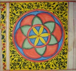 | Description / विवरण | Miniature painting depicting floral designs and circular motifs in the centre. |