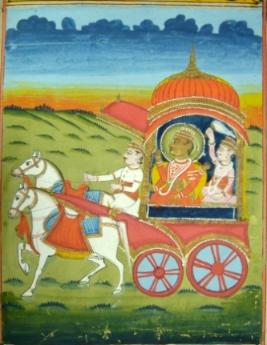 Four armed deity in chariot |