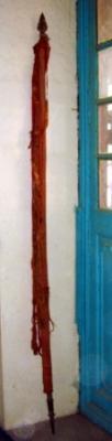 | Description / विवरण | Jhanda, flag of Nishan. The Jhanda is fixed with a wooden stick which has a pointed end and a blunt end of metal. The cloth condition is very bad. |