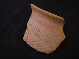 | Description / विवरण | It is a medium fabric well fired; red slipped potsherd. It has got cheveron pattern incised decoration on it. Its rim is slightly flaring. It is associated with OCP. |