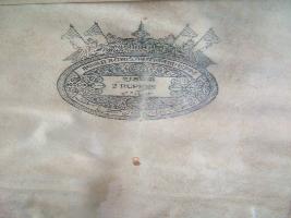 | Description / विवरण | A Jaipur stamp print, value of two rupees. It has four human half figures holding flags on the top with Shri Ramji printed in the centre. |
