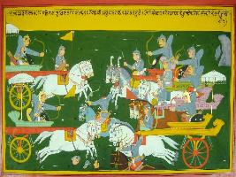 | Description / विवरण | Miniature painting based on Mahabharat - Shalya parva depicting Yudhisthir is attacking on shalya as lightening falls on mountain. |