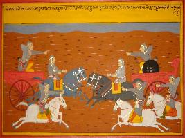 | Description / विवरण | Miniature painting based on Mahabharat - Shalya parva. The painting a battle scene of Duryodhan and Dhristdhyumna. |