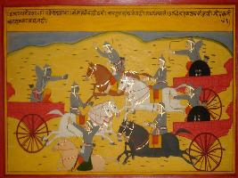 | Description / विवरण | Miniature painting based on Mahabharat - Shalya parva. The painting depicts a battle scene of Ashwathama and Arjun. |