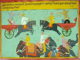 | Description / विवरण | Miniature painting based on Mahabharat - Drona parva. The painting depicts the fighting between Duryodhana and Bhim. |