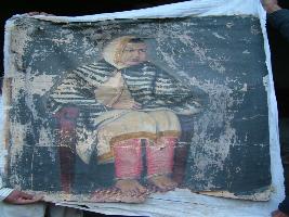 | Description / विवरण | It is a painting of a Begam lady shown sited on a chair wearing a shawl and golden border suit and red pajama. |