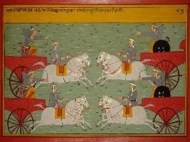 | Description / विवरण | Miniature painting based on Mahabharat - Shalya parva depicting Bhim and Duryodhana that making a great contest. |
