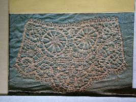 | Description / विवरण | It is a machine made lace made in Ceylon. The edges are straight and wavy lines in between these floral and mango shaped designed with fine net. |