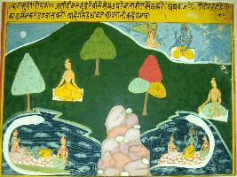 | Description / विवरण | Miniature painting based on Ekadashi Mahatmya depicting the importance of Ekadashi of Kati month. The painting depict a Brahman in dhyana, worshipping Sheshshyayi Vishnu who is seen sleeping under water. At the lower left corner also a man is seen worshipping Vishnu. At the top left corner Vishnu is depicted worshipped by Garuda. |