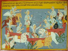 | Description / विवरण | Miniature painting based on Mahabharat - Shalya parva depicting Bhim is standing in front of Shalya. At that time Duryodhan come and kill a soldier with a spear. After that vigorous battle between Kaurava and Pandavas starts. |
