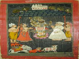 | Description / विवरण | Miniature painting depicting Eklinga ji standing and other people are praying him. |