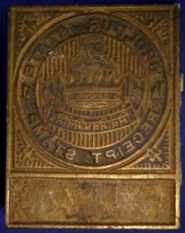 | Description / विवरण | Metallic revenue stamp block of Dholpur state. It is square in shape. |