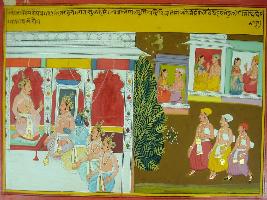 | Description / विवरण | Miniature painting based on Mahabharat - Rajdharma parva. Arjun is depicted telling Yudhisthir about how to treat and behave with guests. |