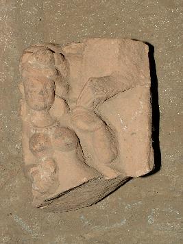 | Description / विवरण | This is an Fragment of Architecture member carved with female figure in standing posture. She has a beautiful head gear and richly ornamented. she is holding a flower like object. |
