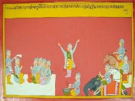 | Description / विवरण | Miniature painting based on Mahabharat - Shalya parva depicting Duryodhan is preparing his cavalry, infantry and elephants for war. |