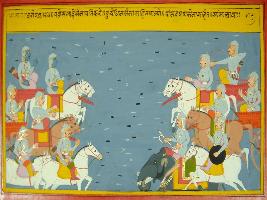 | Description / विवरण | Miniature painting based on Mahabharat - Shalya parva depicting by making Shalya as senapati Duryodhan and the Kaurava army is marching towards the war field and Pandavas too with their army come forward them. |