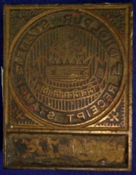 | Description / विवरण | Metallic revenue stamp block of Dholpur state. It is square in shape. |
