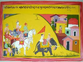 | Description / विवरण | Miniature painting based on Harivansha depicting Krishna and Balram moving with their army. |