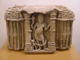 | Description / विवरण | This architectural member is richly ornamented and it bears a figure of Agni standing in tribhanga posture. A ram is standing beside his leg. Flames are raising behind his head. Hands are partly damaged and one hand bears a lotus. |