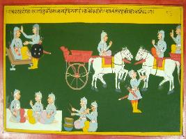 | Description / विवरण | Miniature painting based on Mahabharat - Shalya parva. On the painting it is depicts that Dryudhona appointed Shalya as their new commander. On that occasion the musician are playing drum. |