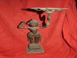 | Description / विवरण | It is a candle stand, shown with a female holding at with one arm. The nude lady is carved out on a pedestal and is well ornamented. |