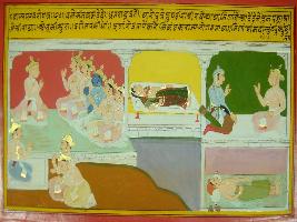 | Description / विवरण | Miniature painting based on Mahabharat - Shalya parva. On the painting Sanjay inform Dhritrashtra that Drupati war born from earth and Pandavas has the fortune for gaining. On the painting Pandavas are seen that sitting with Dhritrashtra. |