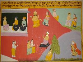 | Description / विवरण | Miniature painting based on Sanskrit drama - Prabodh Chandrodaya where Kama says that anybody can be influenced by him, even Brahma got attracted to his own daughter, braves like kings and even sages could not escape from him. |