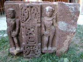 | Description / विवरण | It is a sculpture of two male. Both had shown in tribhang katihast posture. Earring had shown both ear. Right male armed had chopped. |
