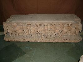| Description / विवरण | This is a panel having images of elephants, in which eleven elephants are carved. Their trunks are joined together. They are richly ornamented. |