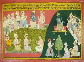 | Description / विवरण | Miniature painting based on Mahabharat - Udyam parva depicting Krishna asking Duryodhan that why he is not keeping the promise of his father and mother. He also says him that if he will follow his parents then only he will be successful. |