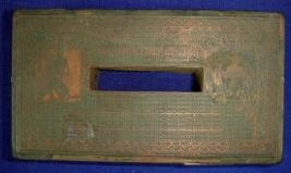 | Description / विवरण | Revenue stamp block of Dholpur state. It is a rectangular wooden block with metal plate fixed on the upper side. |