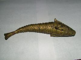 | Description / विवरण | It is a bronze fish carved in form of oscillating fish having long tail and zig-zag fins. |