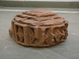 | Description / विवरण | It is a top portion of a pillar. It is having floral designs which are carved out in diamond shape. On the topmost portion a dome shaped, circular designs with ridges can be seen. Floral designs are in niches. |