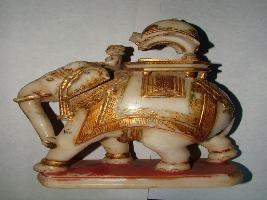 | Description / विवरण | It is a Makrana marble elephant with Mahavat painted in golden colour. The seat of throne having minaret top is in broken condition remain at the place. |