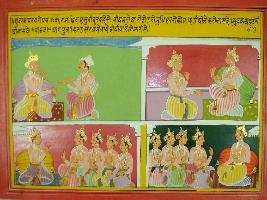| Description / विवरण | Miniature painting based on Mahabharat - Udyam parva depicting Vidur telling king Dhritrashtra that the anger of yours Bhishma, Drona and Yudhisthir will distroy the earth. It will be good if five Pandavas, 100 sons of yours and Karna will together ruled the World. |