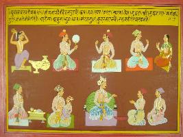 | Description / विवरण | Miniature painting based on Mahabharat - Udyam parva depicting 10 qualities of man Bal, Rupa, Swara, Vara, Sparsha, Teja, Shri, Sukmarka, Bhali stri Good wife .In this four other qualities inculdes- Arogya, AAyusha, Sukh, Bal, Santsudha. This should followed with Sounde coming. |