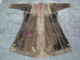 | Description / विवरण | It is a choga, pashmina, a garment, used to wear on the upper body, is made up of silk and cotton and is decorated with floral design. It is having embroidery work throughout the cloth. |