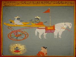 | Description / विवरण | Miniature painting based on Shri Bhagwat Gita. It depicts Krishna preaching Arjun person gets it position according to its capability. |