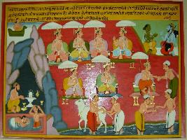 | Description / विवरण | Miniature painting based on Eklinga Mahatmya depicting kings in two rows, while Vayu tells Narad about the worship of Eklinga -a king should take bath in the morning and worship Eklinga ji and make donations to the poor people. |