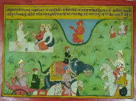 | Description / विवरण | Bhishma is depicted telling Duryodhan that I am the commander of the army and will fight fiercely with Pandavas and remove your fear. Drona and others are also in our army, and are powerful. Even if Indra comes I will fight. |