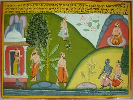 | Description / विवरण | Miniature painting based on Eklinga Mahatmya. It is a story of Gautam rishi making his wife Ahilya turn into a rock by his curse and Ahilya gaining the former form by the touch of Ram s feet. |