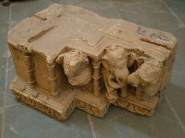 | Description / विवरण | It is an architectural stone piece which is having elephant figures and Kirtimukh. Elephant are further ornamented with jewels. All these depiction have been shown with the help of carving work. |