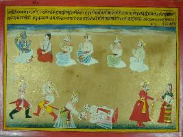 | Description / विवरण | Miniature painting based on Mahabharat depicting Ulluk talking to Arjun and saying that one day Duryodhan will get the result of ills he has done, Bhim will kill Dushasan. |