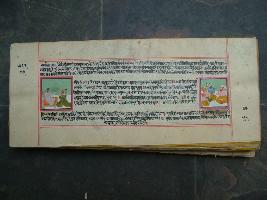 | Description / विवरण | It is a manuscript, called Raas-panchaddhyayi, based on Krishna s life. On each page written work and two painting can be seen. |