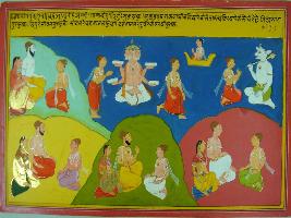 | Description / विवरण | Miniature painting based on Mahabharat - Adi parva depicting Brihgu rishi, son of Brahma had one son named Shukra. Shukra became guru of demons and became Shukracharya. Brihgu rishi had one more son named Shivna. Shivna had one son Vanmala who in turn had a son named Rachi rishi. |